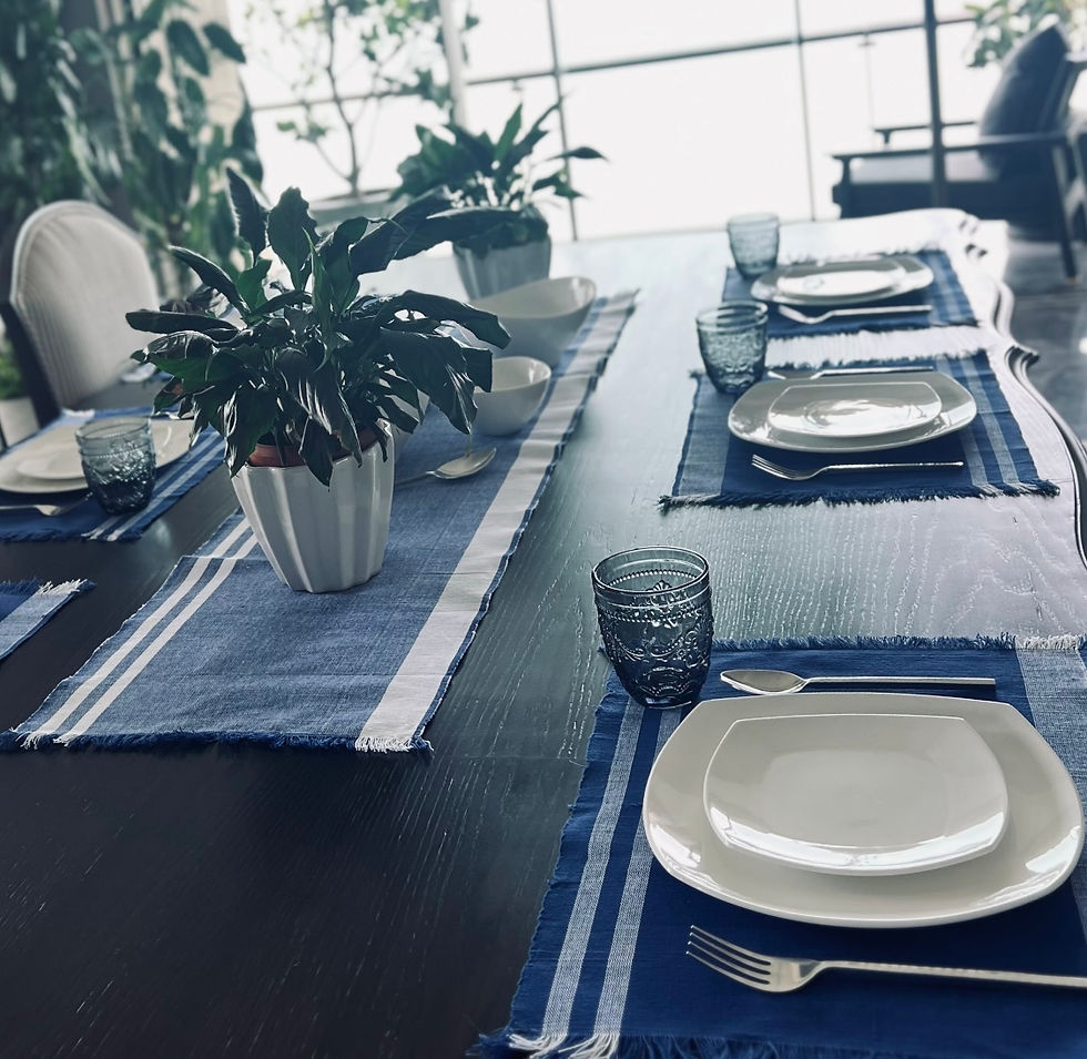 WOVEN FAWN TEAL STRIPE TABLEMATS X 6